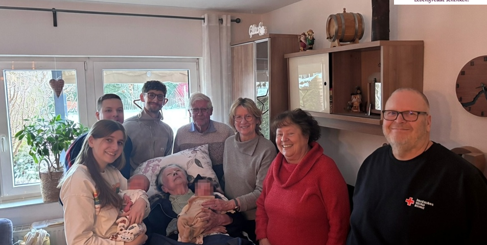 Noch während ihres Gesprächs kam die Tochter von Frau F. hinzu und nahm das Jahrbuch 2025 in die Hand. So kamen sie ins Gespräch und erfuhren, dass vor elf Tagen die Urenkel von Frau F. (82) zur Welt gekommen waren – und dass es doch wunderbar wäre, wenn sie sich noch einmal sehen könnten.