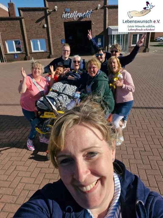 Juni 8, 2025Vor einiger Zeit erreichte uns eine Wunschanfrage aus dem „Hospiz am Wattenmeer“ in Varel. Wir erfuhren, dass Frau J. (65) sich trotz ihrer rasch fortschreitenden ALS-Erkrankung einen Tagesausflug nach Norderney zusammen mit ihren vier Töchtern wünschte. Bisher immer eine Familientradition, die „Mama und ihre Mädels“ mindestens einmal pro Jahr auf eine der Nordseeinseln geführt hatte, wo sie zusammen wertvolle Familienzeit genossen. Für uns war es selbstverständlich, ihr diesen Wunsch zu erfüllen und Rollstuhltransport und pflegerische Versorgung zu organisieren. Innerhalb kürzester Zeit gelang es uns, ein großartiges Team für die Wunscherfüllung auf die Beine zu stellen. Zu neunt machten die Reisegesellschaft sich auf den Weg und zusammen erlebten sie einen großartigen Tag. Auch das Wetter zeigte sich von seiner schönsten Seite. Auf der Insel zogen sich die Begleiter*innen zurück, so dass die Familie unter sich sein konnte. Frau J. erlebte die Zeit mit ihren Töchtern, genauso wie sie es sich gewünscht hatte. Bereits wenige Tage danach hat Frau J. sich auf ihre letzte Reise begeben.