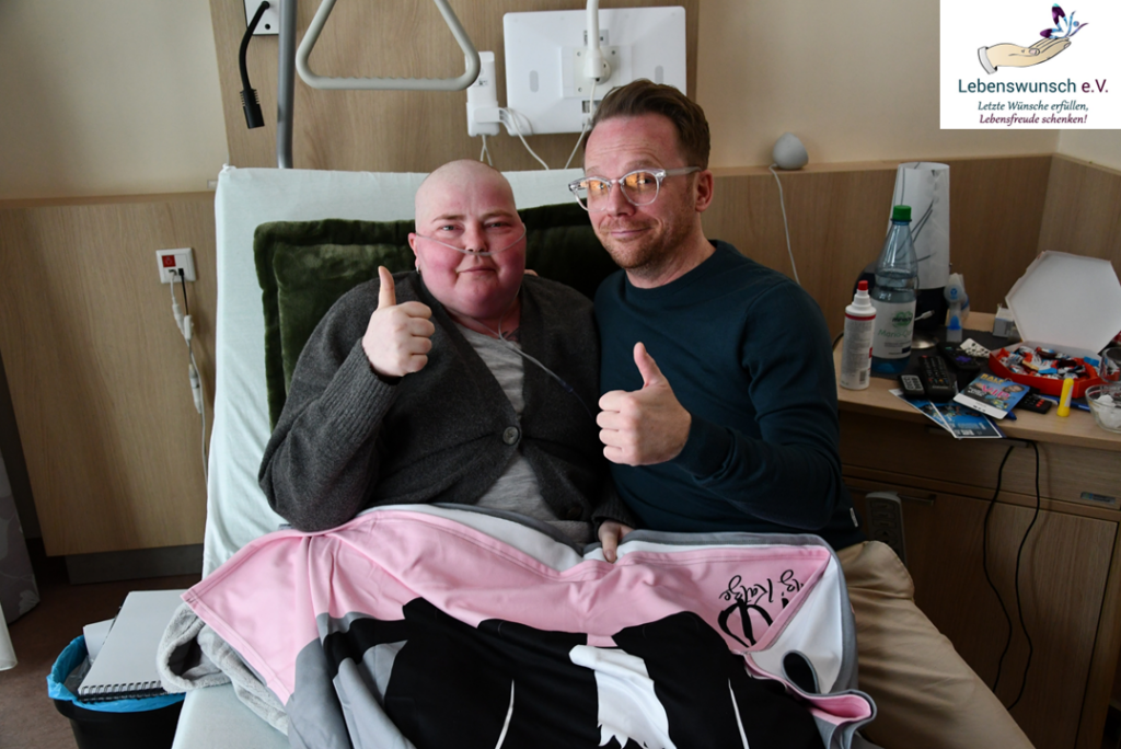 Als unser Wunscherfüller zusammen mit Cleopatra (Hospizleitung Kea Bünnemeyer) das Zimmer betrat, ahnte Fenja, dass es um sie ging, und war richtig positiv aufgeregt. Sie wusste ja noch nicht, was passieren würde.
