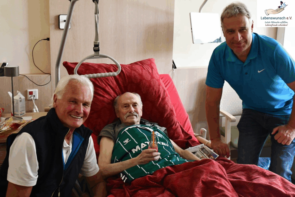 „Manche Wünsche unserer Gäste sind ganz leise“, erzählt eine Mitarbeiterin des Hospizes, „und dennoch voller Bedeutung.“ Schließlich war es der „kurze Draht“ unseres Wunscherfüllers und Vorstandsmitglieds Peter Löhmann, der alles ins Rollen brachte. Nach einem kurzen Telefonat mit Marco Bode war klar: Dieser Wunsch wird erfüllt. Eine Videobotschaft? Für ihn undenkbar. „Das ist doch viel zu unpersönlich – ich möchte Herrn K. persönlich treffen.“